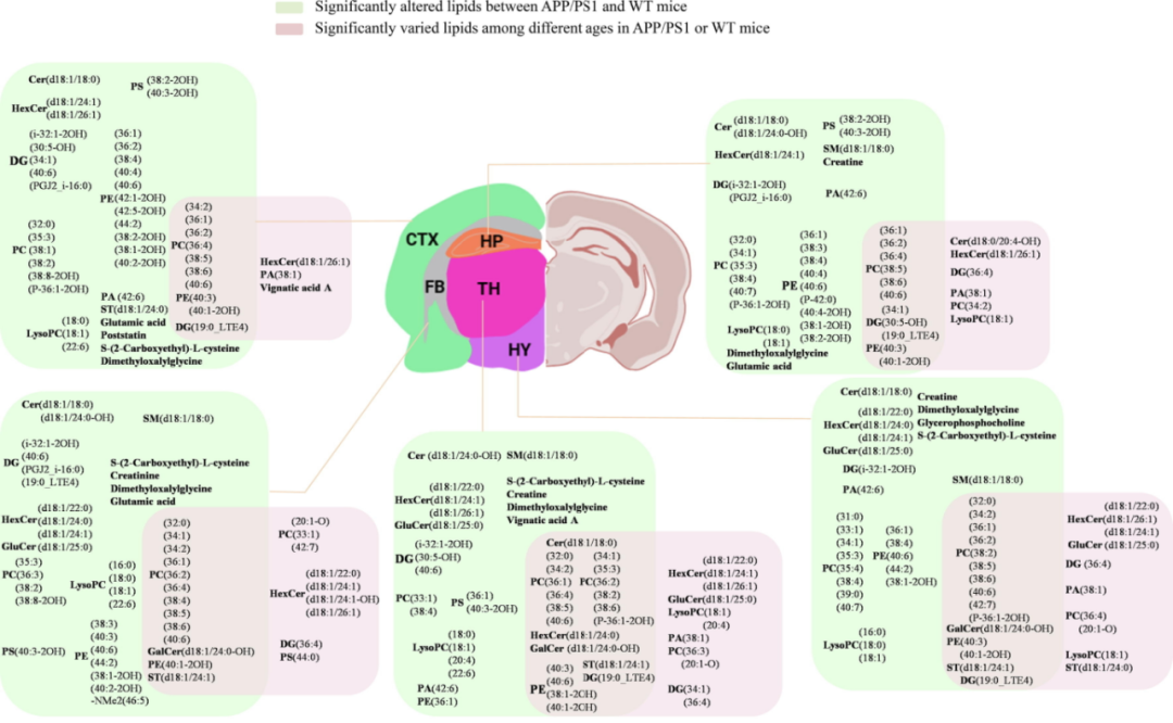 2. 时空脂质组学揭示阿尔茨海默病进展期间小鼠脑脂质代谢失调